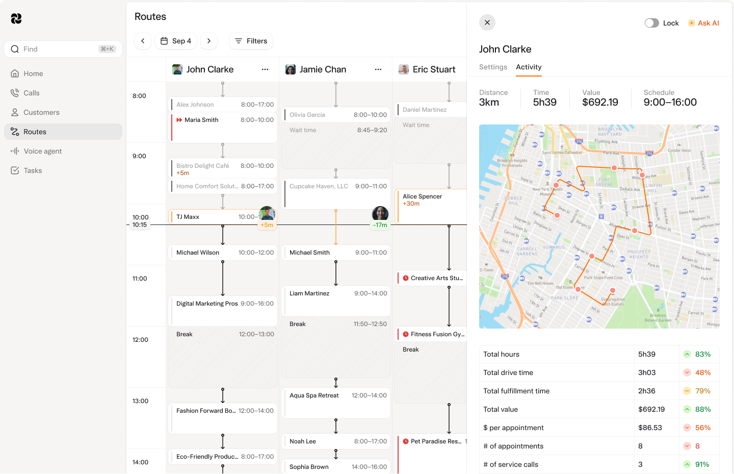 Track performance across operations, finances, and customer service with visual reports that update in real-time throughout the day.
